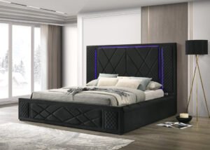 Lorenzo Black Platform Bed (w/ LED LIGHTS) – Queen, King