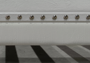 Description: White Velvet with Diamonds. Crocodile vinyl across bottom with metal legs.